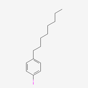 The presence of a long alkyl chain, such as the octyl group in 1-Iodo-4-octylbenzene, imparts specific physical and chemical properties to the molecule. Long-chain alkylbenzenes are known to influence the solubility of compounds in organic solvents and can play a crucial role in controlling the morphology and processing of materials.