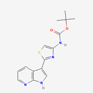 tert-butyl 2-(1H-pyrrolo[2,3-b]pyridin-3-yl)thiazol-4-ylcarbamate is a complex organic compound that has garnered significant interest in various fields of scientific research. This compound is characterized by its unique structure, which includes a pyrrolopyridine core fused with a thiazole ring and a carbamic acid tert-butyl ester group. Its distinct chemical properties make it a valuable subject for studies in chemistry, biology, medicine, and industry.