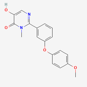 The mechanism of action of 5-hydroxy-2-[3-(4-methoxyphenoxy)phenyl]-3-methylpyrimidin-4-one involves its interaction with specific molecular targets and pathways. The compound may exert its effects through inhibition of certain enzymes or receptors, modulation of signaling pathways, or interaction with cellular components . Detailed studies are required to fully elucidate the molecular targets and pathways involved.