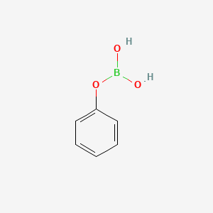 The foundational principles of this compound's utility are rooted in its distinct chemical structure and properties. The molecule consists of a planar phenyl group attached to a trigonal planar boronic acid moiety. ontosight.ai In aqueous solutions, it acts as a weak Lewis acid, with a pKa of approximately 8.8, by accepting a hydroxide (B78521) ion to form a tetrahedral borate (B1201080) species rather than by donating a proton. ontosight.ai