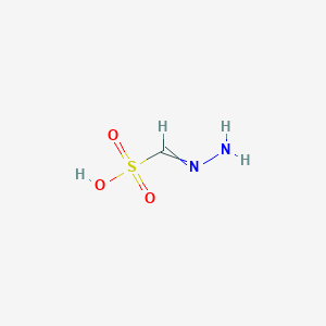 AIMSA’s molecular structure centers on a sulfonic acid group (-SO₃H) bonded to a methylene carbon that is doubly bonded to a hydrazinylidene group (-N=N-). The IUPAC name, hydrazinylidenemethanesulfonic acid , reflects this arrangement. Key features include: