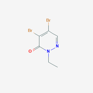 4,5-Dibromo-2-ethylpyridazin-3(2H)-one is a halogenated pyridazinone derivative characterized by bromine atoms at the 4- and 5-positions and an ethyl group at the 2-position of the pyridazinone ring. Pyridazinones are heterocyclic compounds with a six-membered ring containing two adjacent nitrogen atoms. This compound is of interest due to its structural similarity to bioactive pyridazinones, which exhibit diverse pharmacological properties such as anti-inflammatory, anti-cancer, and photosynthetic inhibition activities .