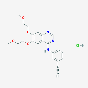 Erlotinib hydrochloride is an orally available, potent, reversible small molecule inhibitor specifically targeting the epidermal growth factor receptor (EGFR) tyrosine kinase guidetopharmacology.orgdrugbank.comaacrjournals.orgnih.gov. It functions by binding reversibly to the adenosine (B11128) triphosphate (ATP) binding site within the intracellular tyrosine kinase domain of the EGFR, thereby competitively inhibiting ATP from binding and subsequently preventing the autophosphorylation of the receptor guidetopharmacology.orgdrugbank.comnih.govwikipedia.org. This inhibition blocks the downstream signaling pathways essential for cancer cell proliferation and survival mdpi.com.