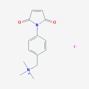 4-(N-Maleimido)benzyltrimethylammonium iodide (MBTA) is a quaternary ammonium compound with the molecular formula C₁₄H₁₇N₂O₂I and a molar mass of 372.20 g/mol . Its structure comprises two functional moieties: