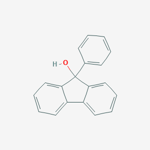 9-Phenyl-9-fluorenol is an organic compound belonging to the class of fluorene (B118485) derivatives. It is characterized by a phenyl group and a hydroxyl group attached to the C9 position of the fluorene backbone. This substitution imparts unique chemical properties, making it a valuable intermediate in various fields, including organic synthesis, materials science, and potentially as a scaffold in medicinal chemistry. This technical guide provides a comprehensive overview of this compound, including its chemical and physical properties, detailed synthesis protocols, reactivity, and known applications, with a focus on its utility for researchers and professionals in drug development.