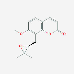 This compound is chemically classified as a coumarin derivative.[1] Its structure features a characteristic benzopyran-2-one core, substituted with a methoxy (B1213986) group and an epoxide-containing side chain.[1][9] The specific stereochemistry of the epoxide group is crucial, with the naturally occurring form being the (S)-enantiomer.[9]
