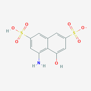 Sodium 4-amino-5-hydroxy-7-sulfonaphthalene-2-sulfonate is utilized in thin-layer chromatography (TLC) as a colorimetric reagent. It aids in the visualization of compounds due to its fluorescent properties when exposed to UV light.