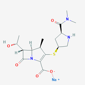 | Record name | 1-Azabicyclo[3.2.0]hept-2-ene-2-carboxylic acid, 3-[[(3S,5S)-5-[(dimethylamino)carbonyl]-3-pyrrolidinyl]thio]-6-[(1R)-1-hydroxyethyl]-4-methyl-7-oxo-, monosodium salt, (4R,5S,6S)- | |