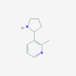 This compound, also known as 2-methylnornicotine, is a heterocyclic organic compound and a structural analog of nornicotine, which is a primary metabolite of nicotine. The core structure features a pyridine ring substituted with a methyl group at the 2-position and a pyrrolidine ring at the 3-position. The presence of the methyl group on the pyridine ring is anticipated to significantly influence the molecule's electronic properties, steric hindrance, and ultimately its interaction with biological targets compared to nicotine and nornicotine.