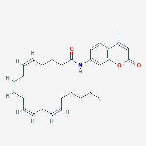 This compound is a synthetic, fluorogenic substrate specifically designed to measure the enzymatic activity of Fatty Acid Amide Hydrolase.[1][2] The molecule consists of arachidonic acid, the fatty acid backbone of the endogenous cannabinoid anandamide, linked to a fluorescent reporter molecule, 7-amino-4-methylcoumarin (B1665955) (AMC).[3] In its intact form, this compound is non-fluorescent. However, upon hydrolysis of the amide bond by FAAH, the highly fluorescent 7-amino-4-methylcoumarin is released.[2][4] The resulting fluorescence can be readily quantified using a fluorometer, with the rate of fluorescence increase being directly proportional to the FAAH activity in the sample.[1] This assay provides a sensitive and continuous method for monitoring enzyme kinetics and for high-throughput screening of potential FAAH inhibitors.[2][4]