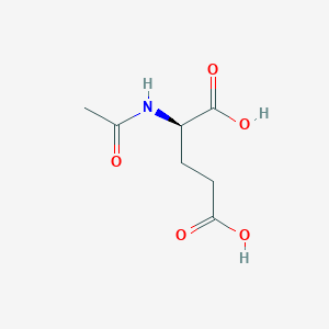 N-Acetyl-D-glutamic acid (NADGA) is a chiral, acetylated derivative of D-glutamic acid. Its chemical formula is C₇H₁₁NO₅, with a molecular weight of 189.17 g/mol . Structurally, it features an acetyl group attached to the amino group of D-glutamic acid, distinguishing it from non-acetylated or L-enantiomeric forms. Physically, NADGA is a white to off-white crystalline solid with a melting point of 192–194°C and a density of 1.354 g/cm³ .