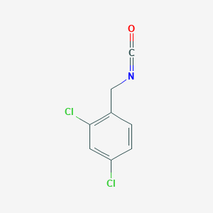 This compound is a specific member of this class, characterized by a benzyl isocyanate core substituted with two chlorine atoms at the 2 and 4 positions of the phenyl ring. While it is a commercially available research chemical, detailed academic literature focusing specifically on its synthesis and reactivity is less extensive than for its isomeric counterpart, 2,4-dichlorophenyl isocyanate. lookchem.com The structural distinction is critical; the methylene spacer in this compound isolates the isocyanate group from the direct resonance effects of the dichlorinated ring, primarily subjecting it to inductive effects.