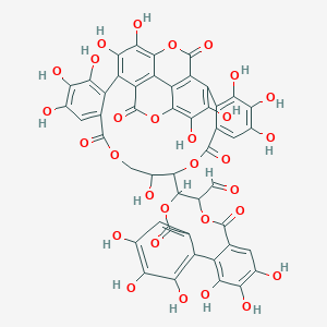 C1C(C(OC(=O)C2=CC(=C(C(=C2C3=C(C(=C4C5=C3C(=O)OC6=C(C(=C(C7=C(C(=C(C=C7C(=O)O1)O)O)O)C(=C56)C(=O)O4)O)O)O)O)O)O)O)C8C(OC(=O)C9=CC(=C(C(=C9C1=C(C(=C(C=C1C(=O)O8)O)O)O)O)O)O)C=O)O | |