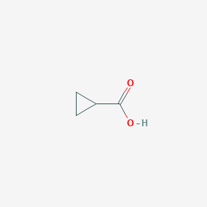 This compound (C₄H₆O₂) is an organic compound featuring a three-membered cyclopropane (B1198618) ring attached to a carboxylic acid functional group.[1][2] The strained nature of the cyclopropane ring imparts unique chemical reactivity to the molecule, making it a valuable building block in the synthesis of pharmaceuticals and agrochemicals.[1]