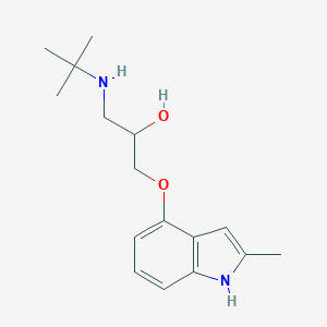 One of the primary applications of 4-(2-hydroxy-3-tert-butylaminopropoxy)-2-methylindole is in the field of receptor pharmacology. It has been utilized in quantitative receptor autoradiography, which allows for the characterization of multiple receptor subtypes. This method is crucial for understanding the pharmacodynamics of various drugs and their interactions with specific receptors .
