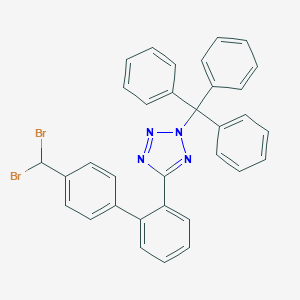 5-[4’-(Dibromomethyl)[1,1’-biphenyl]-2-yl]-2-(triphenylmethyl)-2H-tetrazole is primarily used as an impurity standard in the synthesis of pharmaceutical agents like Losartan and Valsartan . Its presence helps in the quality control and validation of these drugs. Additionally, it may be used in research studies to understand the behavior of similar compounds and their interactions in biological systems .