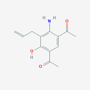 1-(5-Acetyl-3-allyl-2-amino-4-hydroxyphenyl)ethan-1-one, with the CAS number 115350-01-1, is an organic compound characterized by a unique molecular structure that includes acetyl, allyl, amino, and hydroxy functional groups attached to a phenolic backbone. This compound has garnered interest in various fields due to its potential biological activities, particularly in medicinal chemistry.