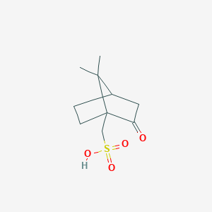 The mechanism of action of camphorsulfonic acid involves its role as a strong acid and catalyst. It facilitates various chemical reactions by providing a proton source or acting as a Lewis acid. For example, in the sulfonation of camphor, it involves a retro-semipinacol rearrangement, deprotonation, and sulfonation of the alkene intermediate . In catalysis, it can activate carbonyl compounds for nucleophilic attack in aldol condensations and other reactions .