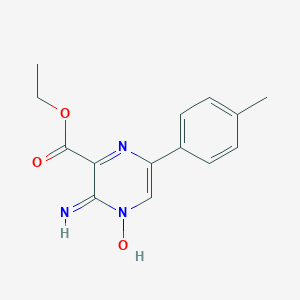 The mechanism of action of Ethyl 4-hydroxy-3-imino-6-(4-methylphenyl)pyrazine-2-carboxylate involves its interaction with specific molecular targets and pathways. The compound is known to inhibit certain enzymes and receptors, leading to its biological effects. For example, it may inhibit kinase activity, which is crucial for cell signaling and proliferation .
