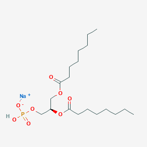 The study of lipid signaling has been greatly advanced by the development of synthetic lipid analogs. Dioctanoyl phosphatidic acid sodium salt is a prime example of such a research tool. ontosight.ai As a synthetic phospholipid with two short C8:0 (octanoyl) fatty acid chains, it exhibits significantly greater aqueous solubility compared to its naturally occurring long-chain counterparts. labscoop.comglpbio.com This property allows for its direct addition to aqueous buffers and cell culture media, facilitating studies on the cellular functions of PA. ontosight.ai Researchers utilize dioctanoyl PA to investigate cell membrane dynamics, lipid-protein interactions, and the downstream consequences of elevated PA levels in various signaling pathways. ontosight.ai It serves as an invaluable model compound for dissecting the complex roles of phosphatidic acid in cellular health and disease.