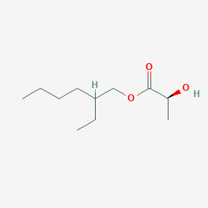 2-Ethylhexyl (2S)-2-hydroxypropanoate, also known as 2-ethylhexyl lactate, is an ester derived from lactic acid and 2-ethylhexanol. Its molecular formula is CHO, with a molecular weight of approximately 202.29 g/mol. This compound is notable for its biocompatibility, biodegradability, and low toxicity, making it a candidate for various industrial and pharmaceutical applications.