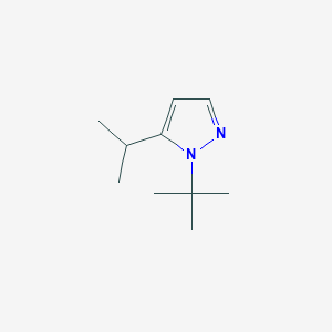 1-(tert-Butyl)-5-isopropyl-1H-pyrazole is a pyrazole derivative featuring a tert-butyl group at position 1 and an isopropyl group at position 5 of the pyrazole ring. Pyrazole derivatives are widely studied for their structural versatility and applications in pharmaceuticals, agrochemicals, and materials science. The tert-butyl group is known to act as a steric protecting group, enhancing stability against electrophilic substitution reactions, while the isopropyl substituent contributes to hydrophobic interactions and steric bulk . This compound is likely utilized as an intermediate in organic synthesis, particularly in the development of bioactive molecules.