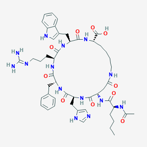 (3S,6S,9R,12S,15S,23S)-15-[[(2S)-2-acetamidohexanoyl]amino]-9-benzyl-6-[3-(diaminomethylideneamino)propyl]-12-(1H-imidazol-5-ylmethyl)-3-(1H-indol-3-ylmethyl)-2,5,8,11,14,17-hexaoxo-1,4,7,10,13,18-hexazacyclotricosane-23-carboxylic acid | |