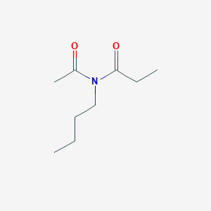 N-acetyl-N-butylpropanamide is a substituted propanamide derivative characterized by the presence of an acetyl (COCH₃) and a butyl (C₄H₉) group attached to the nitrogen atom of the propanamide backbone. Its molecular formula is C₉H₁₇NO₂, with a molecular weight of 171.24 g/mol. Structurally, it is represented as CH₃CH₂CON(COCH₃)(C₄H₉). This compound is hypothesized to exhibit moderate lipophilicity due to the aliphatic butyl chain, which may influence its solubility and reactivity in organic solvents.