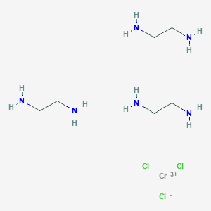 Tris(ethylenediamine)chromium(III) chloride is characterized by its coordination structure where chromium is surrounded by three bidentate ethylenediamine ligands. This complex exhibits notable stability and solubility in various solvents, which enhances its utility in different applications. The molecular formula is represented as Cr(C₂H₈N₂)₃Cl₃, and it typically appears as a yellow crystalline solid or powder .