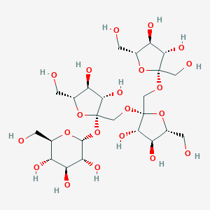 Enzymes that hydrolyze nystose are found in various microorganisms and play a role in their metabolism. The characterization of these nystose hydrolases involves determining their substrate specificity and kinetic parameters. For example, a β-fructofuranosidase from the yeast Rhodotorula dairenensis was shown to hydrolyze nystose, although with a very weak specific activity (0.63 ± 0.06 U mg⁻¹) compared to sucrose (36 ± 2.8 U mg⁻¹) and 1-kestose (19.4 ± 0.8 U mg⁻¹). oup.com