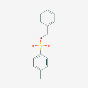 The tosylation of alcohols is a fundamental transformation in organic chemistry, converting a poor leaving group (hydroxyl) into an excellent one (tosylate). This activation facilitates a wide range of nucleophilic substitution and elimination reactions, making tosylates valuable intermediates in the synthesis of pharmaceuticals and other complex organic molecules. This compound, in particular, serves as a key precursor for the introduction of the benzyl group, a common motif in pharmacologically active compounds. The synthesis is typically achieved by reacting benzyl alcohol with p-toluenesulfonyl chloride in the presence of a base to neutralize the hydrochloric acid byproduct.[1]