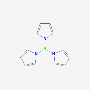 Tri(pyrrol-1-yl)borane is a boron-centered compound featuring three pyrrole ligands coordinated to a central boron atom. Its structure consists of a trigonal planar geometry, stabilized by π-electron donation from the pyrrole rings to the boron atom.