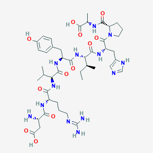 InChI=1S/C44H67N13O12/c1-6-23(4)35(41(66)54-31(18-26-20-48-21-50-26)42(67)57-16-8-10-32(57)39(64)51-24(5)43(68)69)56-38(63)30(17-25-11-13-27(58)14-12-25)53-40(65)34(22(2)3)55-37(62)29(9-7-15-49-44(46)47)52-36(61)28(45)19-33(59)60/h11-14,20-24,28-32,34-35,58H,6-10,15-19,45H2,1-5H3,(H,48,50)(H,51,64)(H,52,61)(H,53,65)(H,54,66)(H,55,62)(H,56,63)(H,59,60)(H,68,69)(H4,46,47,49)/t23-,24-,28-,29-,30-,31-,32-,34-,35-/m0/s1 | |