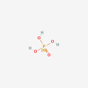 (32P)Phosphoric acid, a radioactive isotope of phosphorus, has been widely utilized in biological research due to its unique properties that allow for the tracing of biochemical processes. This compound plays a crucial role in studying cellular metabolism, protein phosphorylation, and the dynamics of nucleic acids. This article provides a comprehensive overview of the biological activity of this compound, supported by data tables, case studies, and detailed research findings.