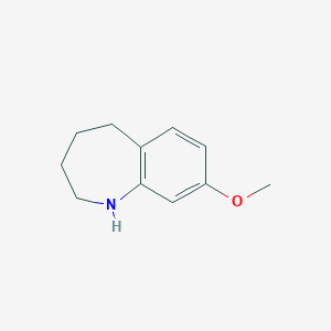 8-Methoxy-2,3,4,5-tetrahydro-1H-benzo[b]azepine is a heterocyclic compound featuring a seven-membered azepine ring fused to a benzene moiety at the [b] position. The methoxy group at the 8-position distinguishes it from other benzazepine derivatives. Its synthesis often involves catalytic methods or functionalization via nucleophilic substitution, as evidenced by its inclusion in pharmaceutical intermediate catalogs .