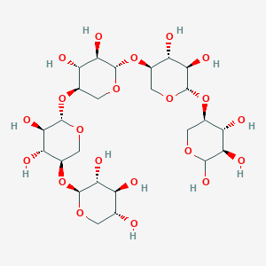 (2S,3R,4S,5R)-2-[(3R,4R,5R,6S)-6-[(3R,4R,5R,6S)-6-[(3R,4R,5R,6S)-4,5-dihydroxy-6-[(3R,4R,5R)-4,5,6-trihydroxyoxan-3-yl]oxyoxan-3-yl]oxy-4,5-dihydroxyoxan-3-yl]oxy-4,5-dihydroxyoxan-3-yl]oxyoxane-3,4,5-triol is unique among xylooligosaccharides due to its specific chain length of five xylose units, which provides distinct prebiotic properties and functional benefits. It has been shown to have a higher efficacy in promoting the growth of beneficial gut bacteria compared to shorter or longer xylooligosaccharides .