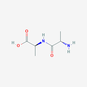 The chemical structure of this compound consists of two alanine molecules joined via a peptide linkage between the carboxyl group of one alanine and the amino group of the other. The stereochemistry of the molecule corresponds to the L-configuration for both amino acid residues.