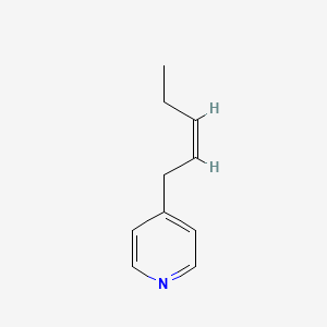 4-[(2Z)-2-Penten-1-yl]pyridine is a pyridine derivative featuring a (2Z)-2-penten-1-yl substituent at the 4-position of the pyridine ring. The Z-configuration of the pentenyl chain introduces stereochemical specificity, which can influence intermolecular interactions, solubility, and biological activity. The compound’s structure combines the electron-withdrawing pyridine ring with a flexible alkenyl chain, enabling unique reactivity and physicochemical properties compared to other substituted pyridines.