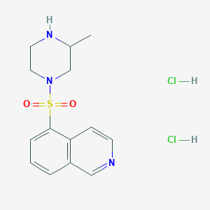 1-(5-Isoquinolinylsulfonyl)-3-methylpiperazine dihydrochloride (CAS 140663-38-3) is a synthetic small-molecule inhibitor targeting protein kinases, particularly protein kinase C (PKC). Its molecular formula is C₁₄H₁₇N₃O₂S·2HCl (molecular weight: 327.83 g/mol) . Structurally, it features a piperazine core substituted with a 3-methyl group and a sulfonylated isoquinoline moiety.