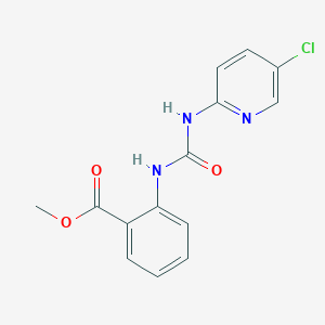 The synthesis of methyl 2-({[(5-chloro-2-pyridyl)amino]carbonyl}amino)benzoate typically involves the reaction of 5-chloro-2-aminopyridine with methyl 2-isocyanatobenzoate. The reaction is carried out under controlled conditions, often in the presence of a suitable solvent such as dichloromethane or toluene, and may require a catalyst to facilitate the reaction. The reaction mixture is then purified using techniques such as recrystallization or chromatography to obtain the desired product in high yield and purity.