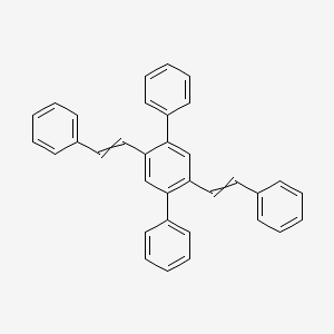 This compound (DPDSB) serves as a key model compound within the broader class of oligo(p-phenylenevinylene)s. rsc.org Its well-defined structure, consisting of a central benzene (B151609) ring substituted with two phenyl and two styryl groups, provides a fundamental framework for studying the photophysical properties of more complex π-conjugated systems. The academic relevance of DPDSB lies in its ability to bridge the gap between simple stilbene-like molecules and longer polymeric chains, allowing for detailed investigations into the evolution of electronic and optical properties with increasing conjugation length.