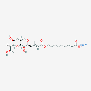 Sodium;9-[(E)-4-[(2R,3S,4aS,7S,8S,8aR)-3,8-dihydroxy-2-[(2S,3S)-3-hydroxybutan-2-yl]-2,3,4,4a,5,7,8,8a-octahydropyrano[3,2-c]pyran-7-yl]-3-methylbut-2-enoyl]oxynonanoate (CAS No. 116182-44-6) is a complex organic compound with potential biological activities. Its molecular formula is C26H43NaO9 and molecular weight is approximately 522.6 g/mol. This compound is structurally related to mupirocin and has been studied for its pharmacological properties.