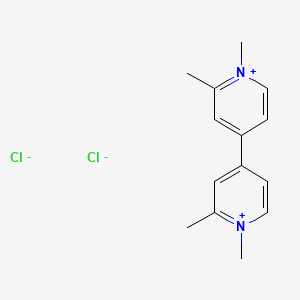 1,1',2,2'-Tetramethylviologen is a viologen derivative characterized by four methyl groups substituted at the 1,1',2,2' positions of the bipyridinium core. Viologens, or 4,4'-bipyridinium salts, are redox-active compounds widely studied for their electron-transfer properties, applications in electrochromic devices, and roles in catalysis. The methyl substituents in this compound likely influence its electronic structure, solubility, and redox behavior compared to unsubstituted or differently substituted viologens. However, none of the provided evidence directly addresses this compound, necessitating extrapolation from structurally related analogs in the literature.