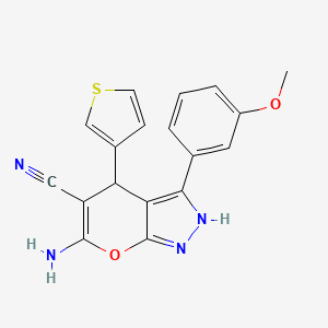6-Amino-3-(3-methoxyphenyl)-4-(3-thiophenyl)-2,4-dihydropyrano[2,3-c]pyrazole-5-carbonitrile