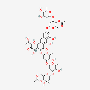 CC1C(C(CC(O1)OC2CC(OC(C2OC(=O)C)C)OC3=CC(=C4C(=C3)C=C5CC(C(C(=O)C5=C4O)OC6CC(C(C(O6)C)O)OC7CC(C(C(O7)C)O)OC8CC(C(C(O8)C)OC(=O)C)(C)O)C(C(=O)C(C(C)O)O)OC)O)O)O |