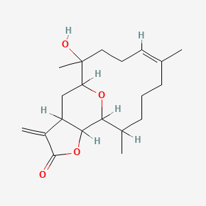 The cytotoxic properties of cembranoid diterpenes may also be linked to their ability to induce apoptosis (programmed cell death) in cancer cells. The specific molecular targets and signaling cascades involved in this process are still under investigation but may involve pathways such as the p53-PUMA and PI3K-Akt signaling pathways.