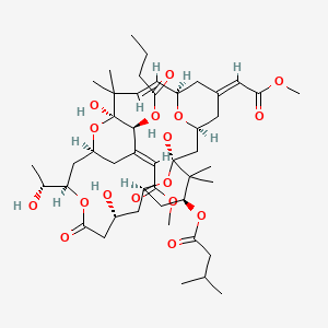 [(1S,3S,5E,7R,8E,11S,12S,13E,15S,17R,21R,23R,25S)-12-butanoyloxy-1,11,21-trihydroxy-17-[(1R)-1-hydroxyethyl]-5,13-bis(2-methoxy-2-oxoethylidene)-10,10,26,26-tetramethyl-19-oxo-18,27,28,29-tetraoxatetracyclo[21.3.1.13,7.111,15]nonacos-8-en-25-yl] 3-methylbutanoate |