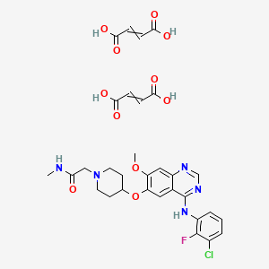 InChI=1S/C23H25ClFN5O3.2C4H4O4/c1-26-21(31)12-30-8-6-14(7-9-30)33-20-10-15-18(11-19(20)32-2)27-13-28-23(15)29-17-5-3-4-16(24)22(17)25;2*5-3(6)1-2-4(7)8/h3-5,10-11,13-14H,6-9,12H2,1-2H3,(H,26,31)(H,27,28,29);2*1-2H,(H,5,6)(H,7,8) |