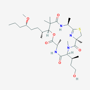 The total synthesis of this compound has been achieved through various methodologies involving macrolactamization and thiazoline formation. These synthetic routes allow for the production of analogs with potentially enhanced biological activities . The ability to create derivatives expands the scope of research into tailored compounds that may exhibit superior therapeutic effects.