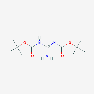 This compound consists of a central guanidine core where two of the nitrogen atoms are protected with tert-butoxycarbonyl (Boc) groups. This protection strategy is crucial for its utility, as it masks the nucleophilicity and high basicity of the guanidine functional group until its desired unmasking, typically under acidic conditions.[1]